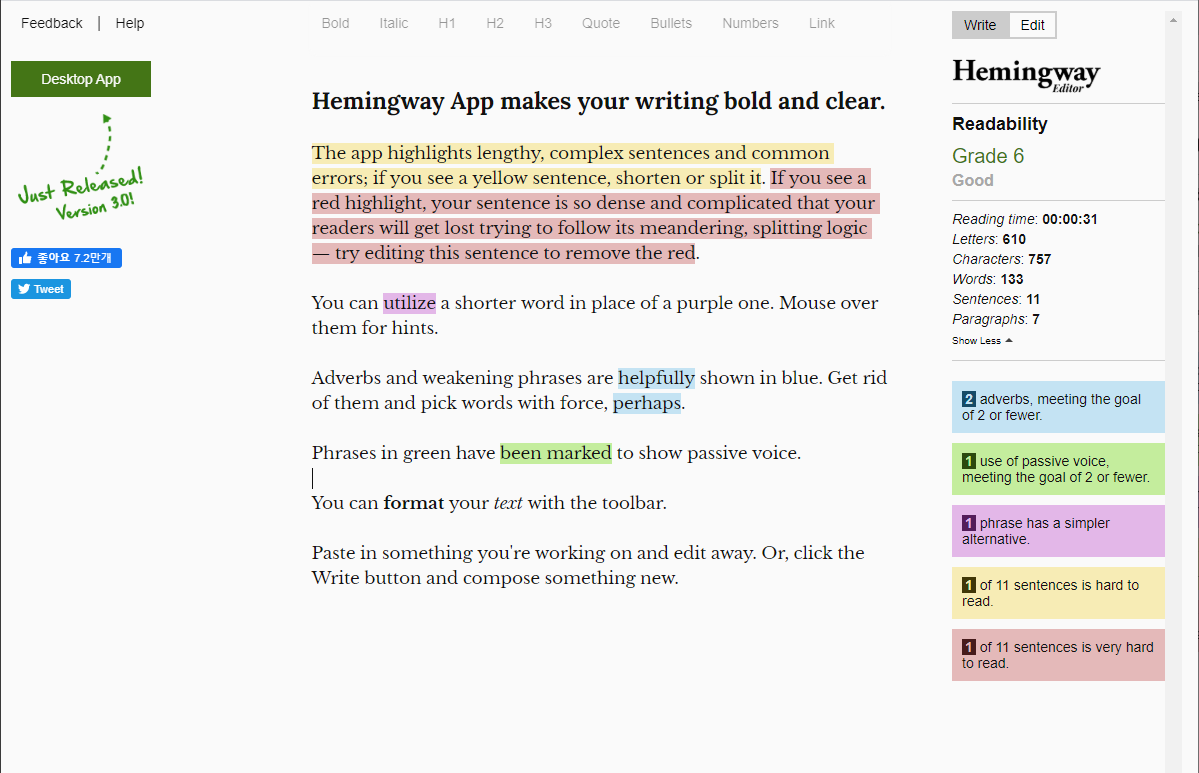 1. 헤밍웨이 앱 Hemingway app